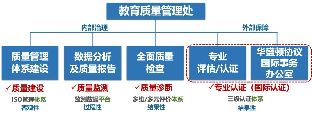 l  質量管理體系借鑒先進管理理念、借助國內專業認證、依托華協國際平臺,建設具有天大特色的全面教育質量管理體系,持續推動學校教育質量文化內涵建設;