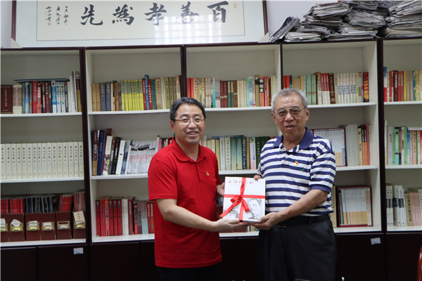 丁曉玲代表老同志們感謝出版社黨總支積極為老同志辦實(shí)事的暖心舉措。今年是中國(guó)共產(chǎn)黨建黨百年華誕,全黨開展黨史學(xué)習(xí)教育。出版社黨總支聚焦老同志的特點(diǎn)和需求,為老同志辦實(shí)事,從今年開始,每年都會(huì)精心挑選適合老同志的書籍,捐贈(zèng)給老同志們,豐富老同志的文化生活。特別感謝出版社黨總支這一關(guān)心關(guān)愛(ài)老同志們的長(zhǎng)效機(jī)制,離退休工作處將充分利用好這些書籍,豐富老同志們的精神文化生活。隨后,丁曉玲代表離退休工作處向出版社黨總支贈(zèng)送了捐贈(zèng)證書。