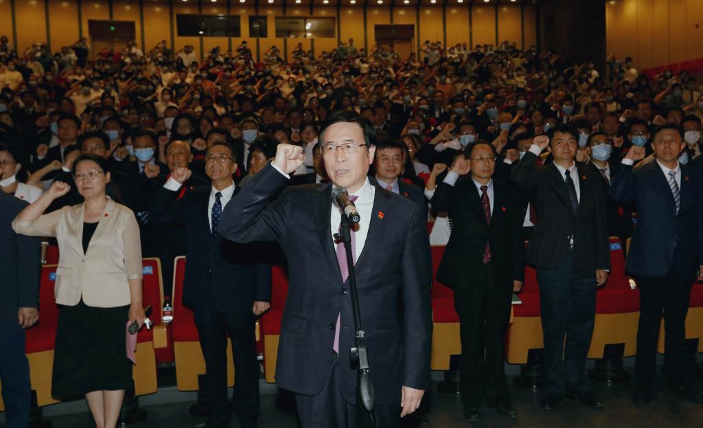 大會開始前,李家俊帶領全體黨員重溫入黨誓詞,牢記初心使命,堅定理想信念,接續百年奮斗。