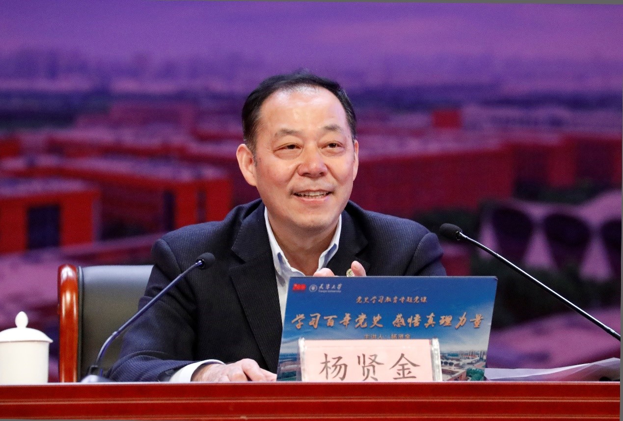 “1980年我從江蘇考到天大,那時最快的火車是綠皮特快,從南京到天津要走17個小時,現在從天津到南京做高鐵只需要四五個小時。”從自己的經歷說起,楊賢金用載人航天、超級計算機、高鐵、5G通訊等學生們身邊的“成就”,對站起來、富起來到強起來三次偉大飛躍做了生動的講解,引導同學們從百年黨史中深刻理解中國共產黨為什么“能”、中國特色社會主義為什么“好”、馬克思主義為什么“行”。“歷史是最好的教科書,回望歷史才能遠觀未來,走得更遠。”楊賢金要求同學們要堅定信仰,感悟真理,在新征程中牢記初心使命,接力開創美好未來。