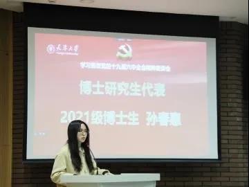 學院2020級本科生代表趙昱翔認為學黨史要堅持宏大敘事,要有理論視野和理論沿襲,要堅持經世致用的現實主義原則。2021級碩士研究生代表何俊說,《決議》彰顯了馬克思主義基本原理的真理光芒,要深刻理解黨百年奮斗的歷史進程,并呼吁青年學生要有家國情懷,做一名合格的社會主義接班人。2021級博士研究生孫春惠緊緊圍繞習近平總書記所講的“大歷史觀”展開分析,認為“大歷史觀”之所以“大”,是因為習近平總書記是從社會主義發展史的角度論述了實現中華民族偉大復興的歷史必然性,并呼吁青年學生牢記使命,勇于奮斗。