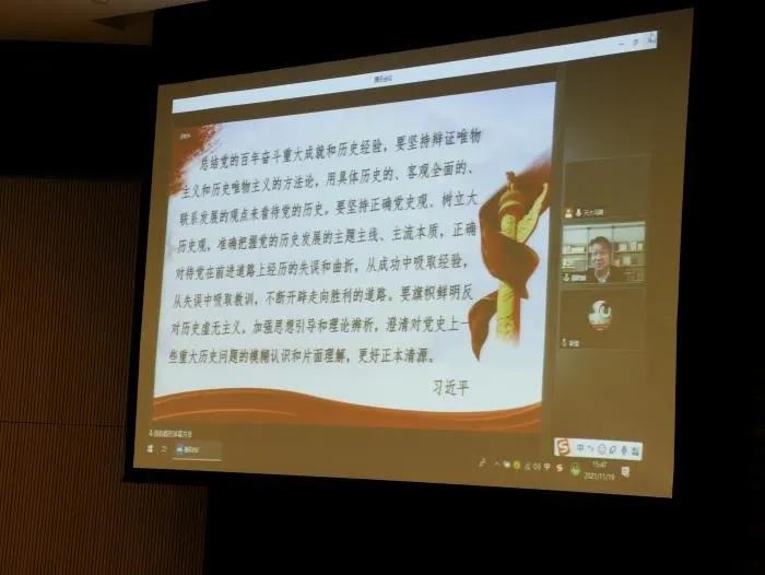 柳洲副教授以《中國共產黨的百年奮斗與創新——深刻領會中國共產黨百年奮斗的歷史經驗之堅持開拓創新》為題做了主旨發言。他從堅持開拓創新的豐富內涵、理論邏輯、歷史邏輯、實踐邏輯、領會踐行幾個方面深刻分析了中國共產黨開拓創新的歷史進程,認為我們黨的歷史就是一步不斷推進開拓創新的歷史,并呼吁大家以《決議》精神為指導,埋頭苦干,勇毅前行。