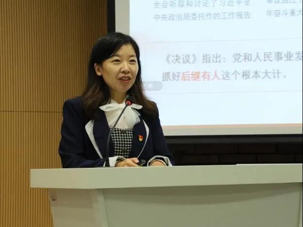 李麗副教授以《用黨的百年奮斗史激勵新時代青年愛國力行——學習黨的十九屆六中全會精神》為題進行發言。她認為,黨和人民的事業發展需要一代又一代中國共產黨人的接續奮斗,必須抓好后繼有人這個根本大計。所以,我們既不能忘記昨天的苦難輝煌,做到以史為鑒,總結失敗經驗,又要無愧今天的使命擔當,以更加昂揚的姿態邁進新征程。