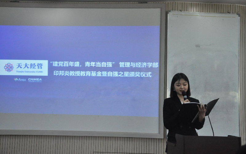 2021年4月16日,“建黨百年盛,青年當自強”印邦炎教授教育基金暨自強之星頒獎儀式成功舉辦。印邦炎教授家屬代表長子查京民老師、孫女印智揚,經管學部黨委副書記袁婷、李庚,校友事務與發展辦公室、學生工作辦公室相關老師出席本次頒獎儀式。活動由2017級工商管理專業朱倍主持。