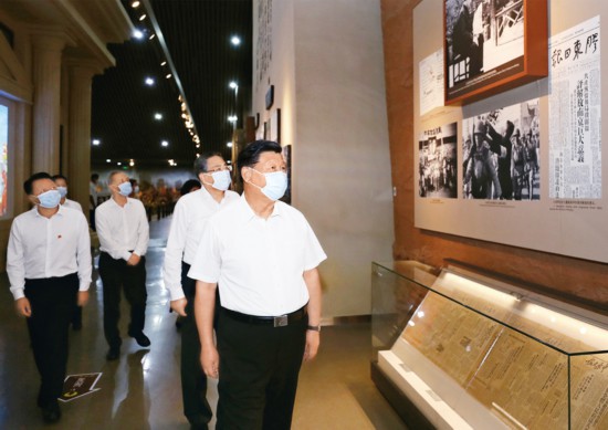 2020年8月18日至21日,中共中央總書記、國家主席、中央軍委主席習(xí)近平在安徽省考察。這是19日下午,習(xí)近平在合肥市參觀渡江戰(zhàn)役紀(jì)念館,重溫革命歷史,緬懷革命先輩的豐功偉績。 新華社記者 鞠鵬/攝