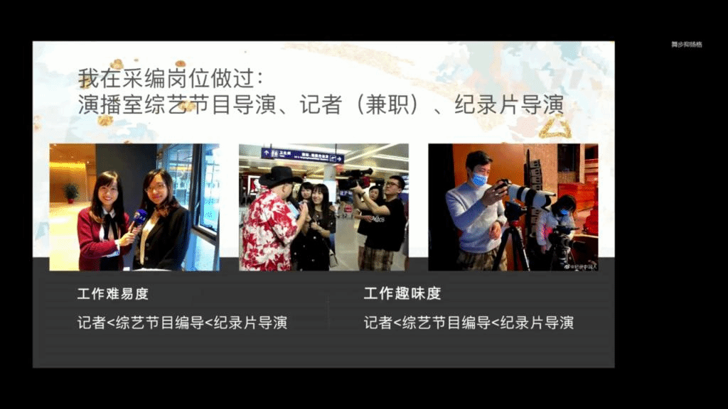 在企業就業方面,2014級翻譯碩士孫傲蕾、2018級翻譯碩士徐萌、2017級翻譯碩士洪憬芳等8位畢業生從企業求職方向以及實習項目經歷等方面,詳細解讀了英專生互聯網求職方向、實習投遞途徑和筆面準備經驗,并啟發同學們在擇業時注重自身的成長發展需求。