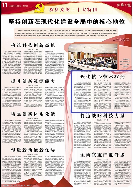 天津市科學技術局黨委書記毛勁松表示,黨的二十大報告將科技、人才、創新的戰略意義和重要地位提升到了新高度。天津將加快實施一批具有戰略性、全局性、前瞻性的重大科技項目,持續開展關鍵核心技術攻關,持續提升科技創新整體效能。