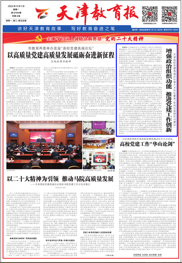 天津教育報頭版:增強政治組織功能 推進黨建工作創新