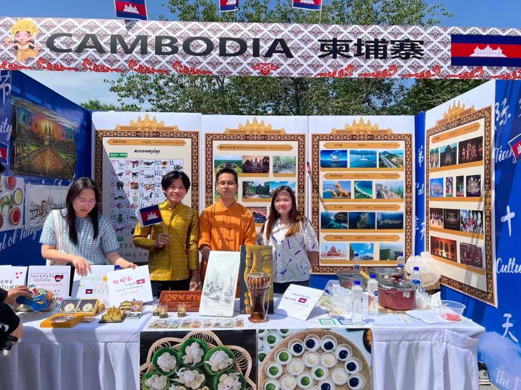 在文化展臺,各國獨特的工藝品、服飾烘托著濃濃的異域風情,各種傳統工藝品精致有趣,各種風情圖片令人耳目一新,讓中外師生近距離感受了各國文化魅力和民族風情。