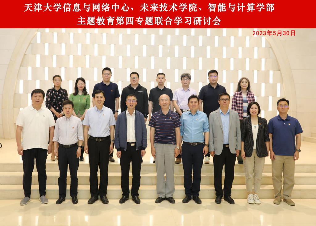 本站訊(通訊員 李娜)5月30日上午,天津大學信息與網絡中心、未來技術學院、智能與計算學部主題教育第四專題聯合學習研討會召開,會議圍繞學習貫徹習近平新時代中國特色社會主義思想主題教育專題四“深入學習習近平總書記關于以人民為中心的重要論述”開展理論聯學。天津大學黨建督導員貢振宇、黨委宣傳部副部長張昊,信息與網絡中心、未來技術學院、智能與計算學部黨委理論學習中心組成員以及智算學部學生支部代表等共計20余人參加會議,智能與計算學部黨委書記魏建國主持研討會。