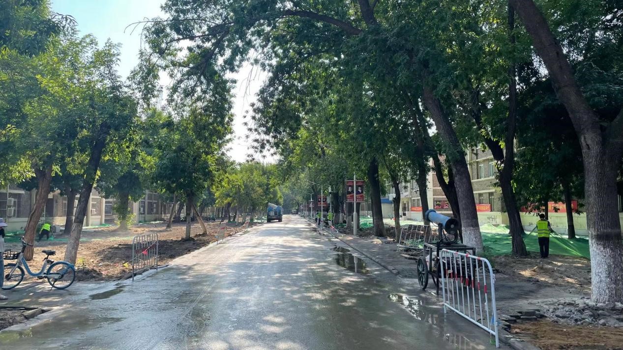 衛津路校區六里臺學生宿舍室外雨季雨水淤積,嚴重影響師生出行。主題教育開展以來,經過座談會征詢相關單位和學生代表意見,在征詢市區相關行政主管部門關于樹木移栽和綠化率影響等問題的意見后,基建規劃處在7月前完成了相關修繕工作的前立項評估、圖紙設計、工程招標及合同簽訂等工作。由于老校區地下管網狀況比較復雜,綜合考慮現場實際情況后,經充分分析論證,本著縮短工期、優先解決師生急難愁盼問題的原則,對施工順序進行了優化調整。施工人員根據景觀豎向標高及本區域內現狀雨水干管的分布情況,在鋪裝道路及行車道設置了雨水口,通過雨水連接管就近排入主干道的雨水檢查井,最終將雨水匯至雨水管網。為保證施工質量,減少地下障礙物對施工進度的影響,基建規劃處參照前期物探成果以開挖探坑的形式對整個施工區域地下障礙物進行了排查,并會同后勤保障部完成綠化樹木移栽方案優化,對現有的部分長勢較差的喬木向區域外移栽,合理利用新校區苗圃地及老校區現有苗木,豐富植物品種,形成統一良好的校園景觀。