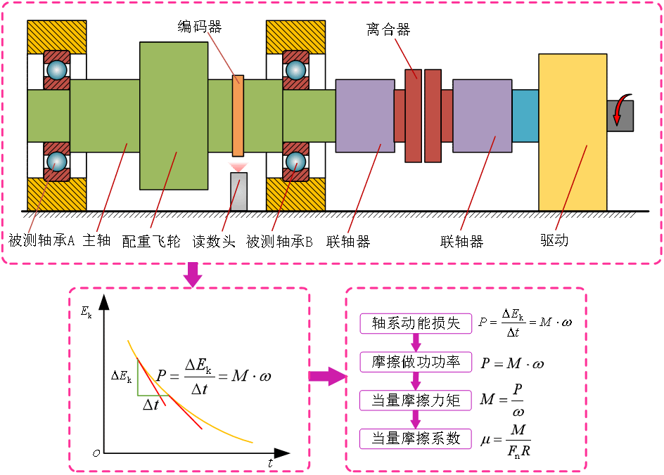 據悉,傳統上往往使用平衡法、傳遞法等直接測量摩擦力矩,測量中需要軸承保持勻速轉動,并且受限于力矩傳感器的精度和操作等影響。本研究放棄直接測力矩,從能量角度入手,使用高精度磁柵角速度傳感器,通過觀察減速過程,捕捉動態的摩擦特性,揭示出軸承摩擦特性隨轉速動態變化的規律?;诖?,團隊可以用一個無量綱系數——當量摩擦系數綜合評價不同軸承的摩擦表現,成功將同一批次的十個高精度軸承按摩擦性能進行了排序,多次驗證均得到相同結果,這是傳統方法無法實現的。